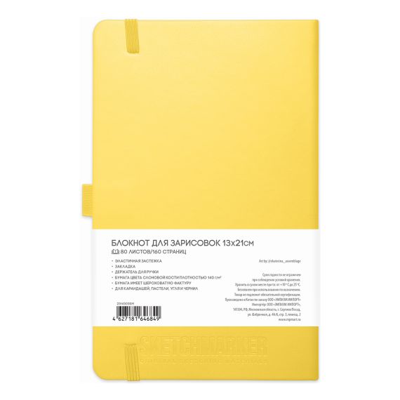 Sketchmarker Блокнот для зарисовок 13х21см 80л 140гр твердая обложка Лимонный
