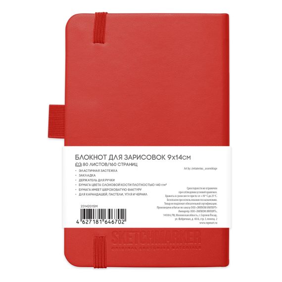 Sketchmarker Блокнот для зарисовок 9х14см 80л 140гр твердая обложка Красный