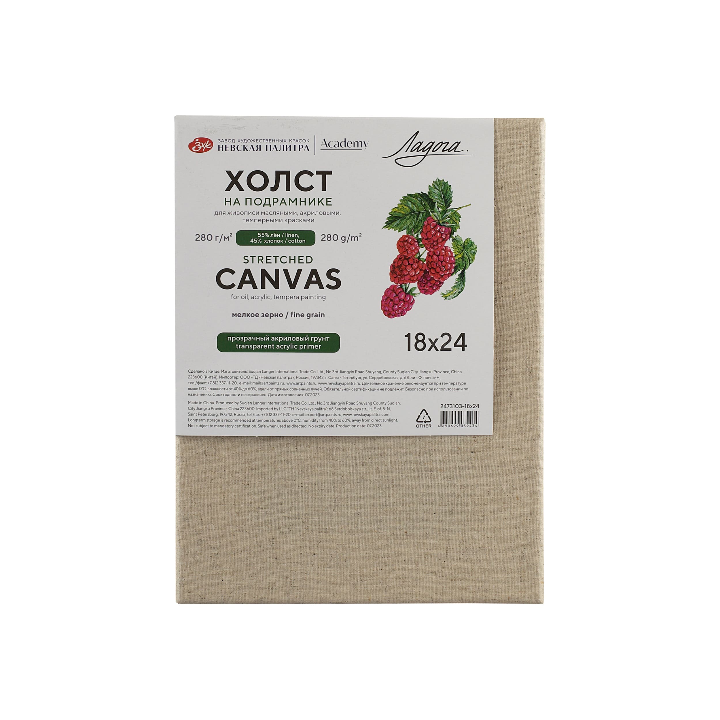 Ладога Холст грунтованный на подрамнике 18х24см 280гр 55% лён 45% хлопок акриловый грунт мелкое зерн