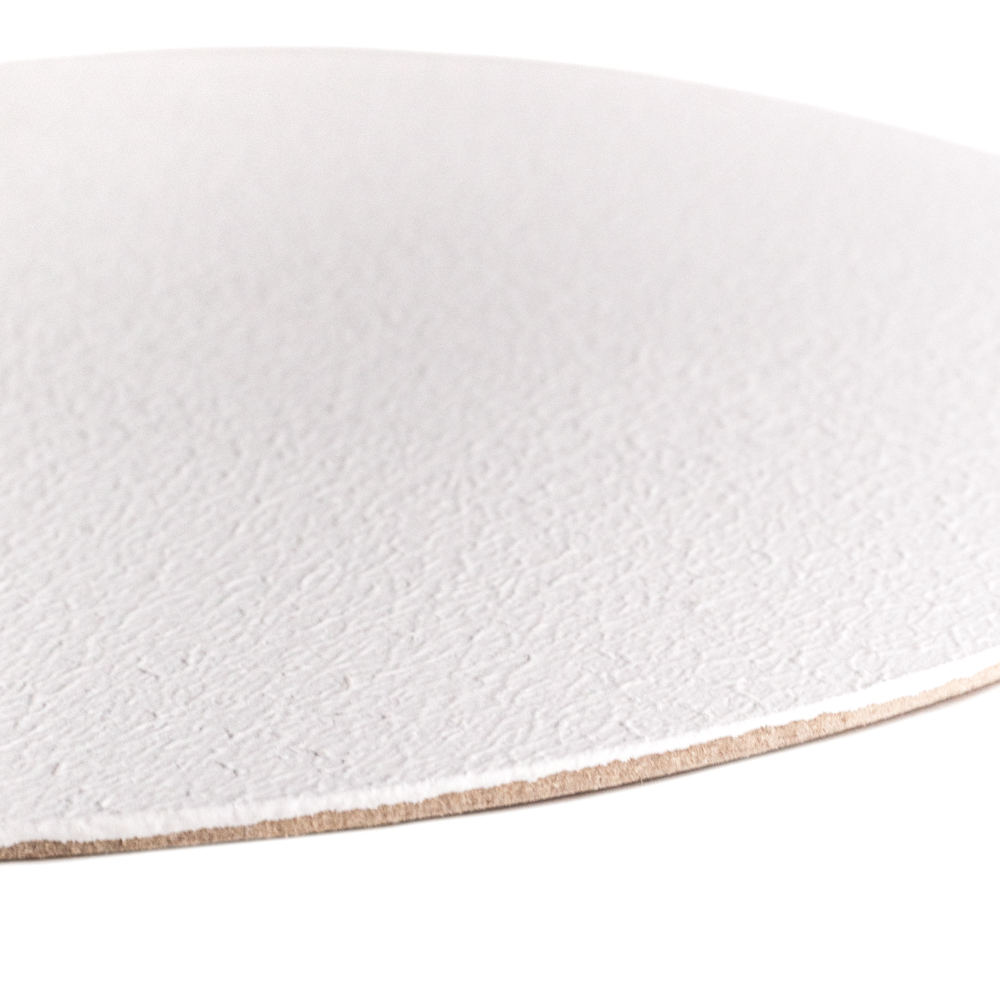 Лёгкий и прочный ХДФ (МДФ повышенной прочности), на который в два слоя нанесён акриловый грунт — отличная основа для работы разными видами красок и других материалов. Изделие имеет лёгкую текстуру, на которую хорошо ложится масляная краска, акрил, гуашь, темпера, масляная пастель. Также его можно использовать для создания модного флюид-арта.