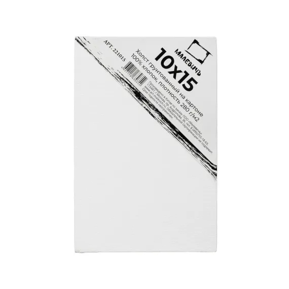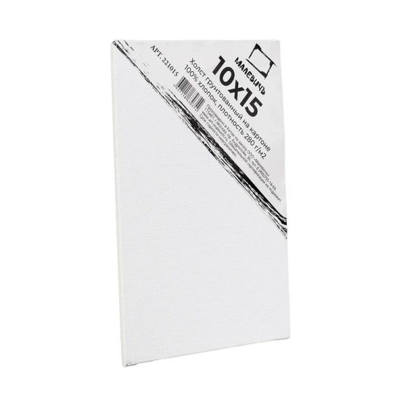 Холст на картоне Малевичъ, 10x15 см. Отличный выбор для студентов и мастеров-художников. Представляют собой профессионально натянутые на картон толщиной 3 мм грунтованные мелкозернистые холсты из натурального хлопка плотностью 280 г/кв. м, позволяющие сразу же приступить к работе. Такие полотна дешевле и прочнее холстов на подрамнике и особенно удобны для работы на пленэре.