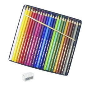 Mondeluz — это профессиональная серия акварельных карандашей. Грифель карандашей с высокой концентрацией пигмента, легко размывается водой. Карандаши удобны при работе с разными техниками живописи. Подходят для профессионального и любительского использования. В палитру серии вошло 76 различных цветов. В наборе 24 карандашей, точилка и кисть.