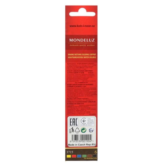 Koh-I-Noor Набор акварельных цветных карандашей Mondeluz 6цв 3715 в картонной коробке
