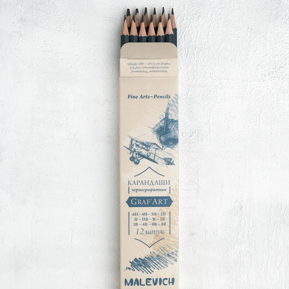 Художественные чернографитные карандаши Малевичъ Graf'Art предназначены для рисования и отвечают всем требованиям предъявляемым к профессиональной художественной продукции. Высококачественный грифель очищен от примесей за счет чего штриховка получается равномерной и четкой. Диаметр грифеля отличается в зависимости от степени мягкости карандаша. Высококачественная древесина обеспечивает легкое затачивание, корпус и грифель не крошатся и остаются целыми даже при падении карандаша. В коллекции 8 степеней мягкости: 2Н, Н, НВ, В, 2В, 4В, 6В, 8В.
