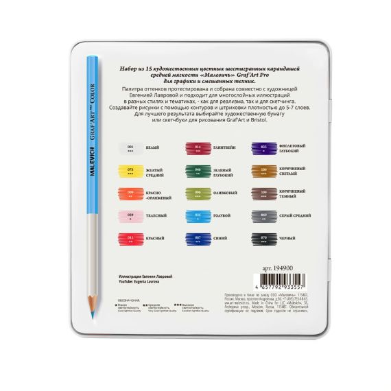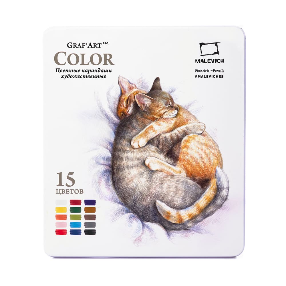 Малевичъ Набор цветных карандашей 15цв GrafArt PRO профессиольных