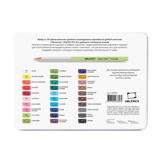 Малевичъ Набор цветных карандашей 30цв GrafArt PRO профессиольных