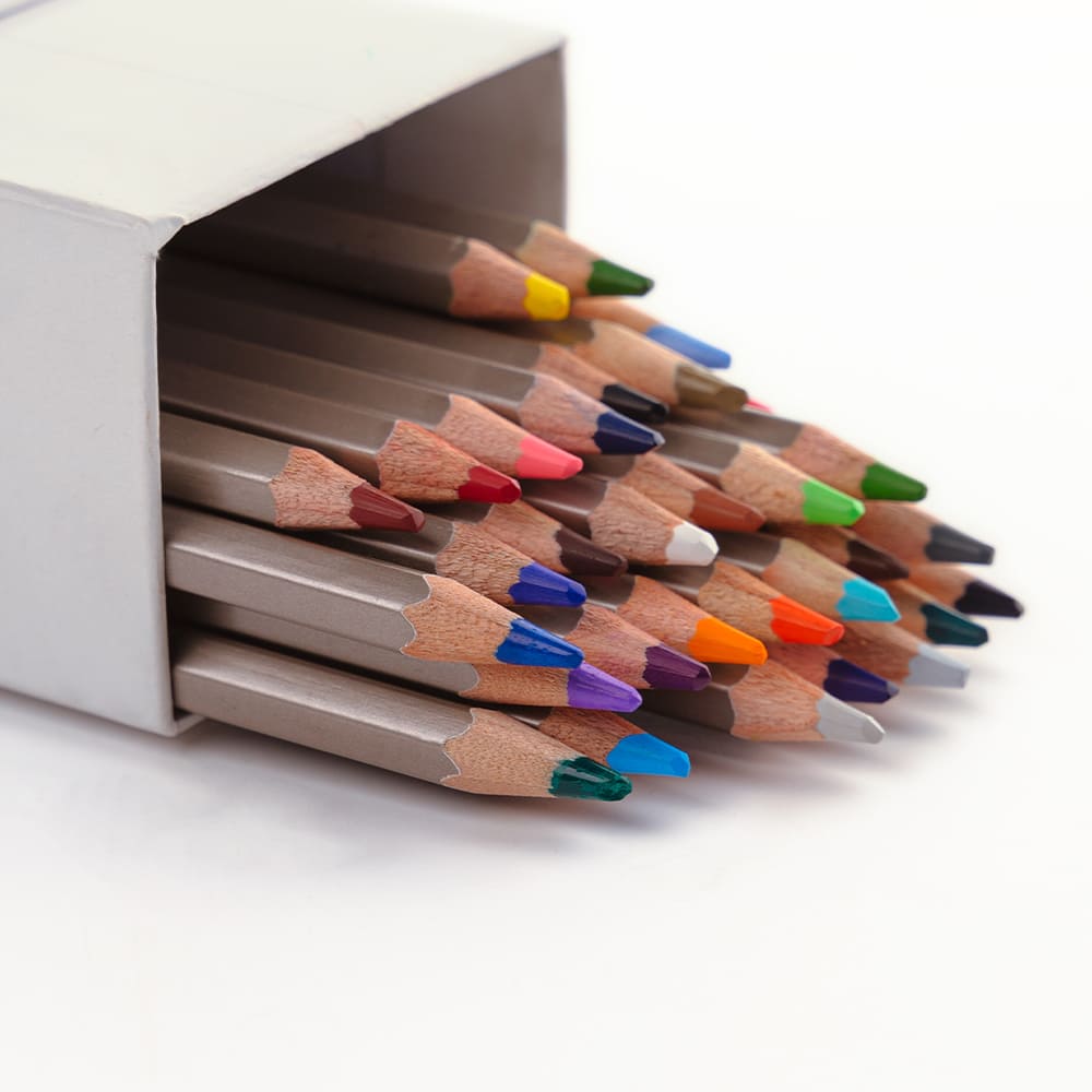 Высококачественная древесина не создаст проблем при заточке. Толщина грифеля поддается художественной заточке. Простой, но лаконичный дизайн не будет отвлекать во время работы, а цветной корпус послужит ориентиром в поиске нужного оттенка. Шестигранный корпус не позволит карандашам кататься по столу, в отличие от круглых.