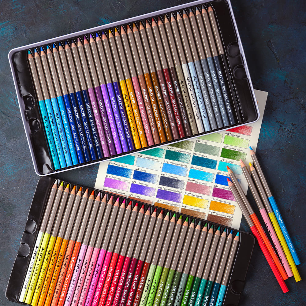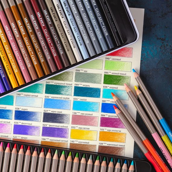 Профессиональные цветные карандаши «Малевичъ» GrafArt PRO на масляной основе средней твердости. Яркие насыщенные пигменты с высокой светостойкостью порадуют любого художника. Карандаши завораживают своей легкостью и свободой в работе не только на белой бумаге, но также на тонированной и даже черной.