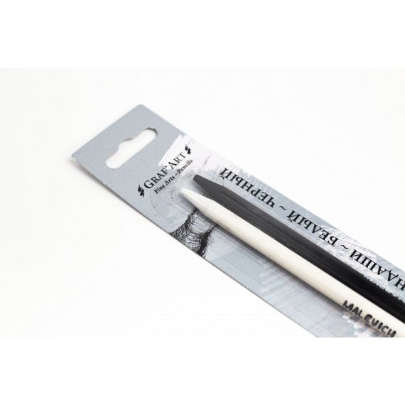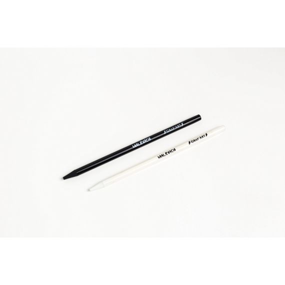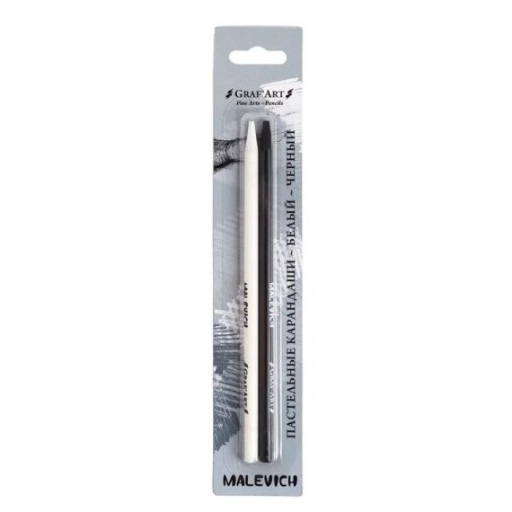 Набор из 2-х художественных монолитных пастельных карандашей «Малевичъ» Graf'Art (черный и белый) для графики и сухих техник. Карандаши сочетаются с классической сухой пастелью, углем, мелом, а также могут использоваться в смешанной технике с соусом (по-сухому).