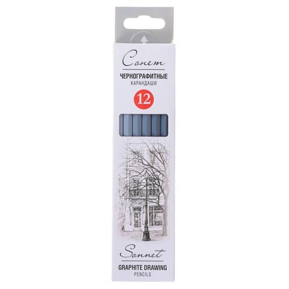 Сонет Набор чернографитных карандашей 12шт 2Н-8В