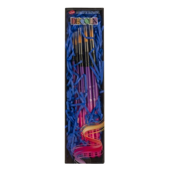 Синтетические кисти Decola с металлической ручкой из прочного и лёгкого металла, что придает кисти долговечность и устойчивость. Металлическая ручка также обеспечивает удобство в использовании и позволяет художнику легко контролировать движения кисти. Это особенно важно при выполнении тонких и детальных работ. Ворс кистей сделан из синтетики и имеет преимуществ перед натуральным, включая устойчивость к химическим воздействиям, долговечность и возможность использования с широким спектром красок. Кисти подходят для работы с различными типами красок, включая акрил, масло, водные краски и гуашь. Состав набора: № 1, 4, 8, 10, 12 круглая, короткая ручка.