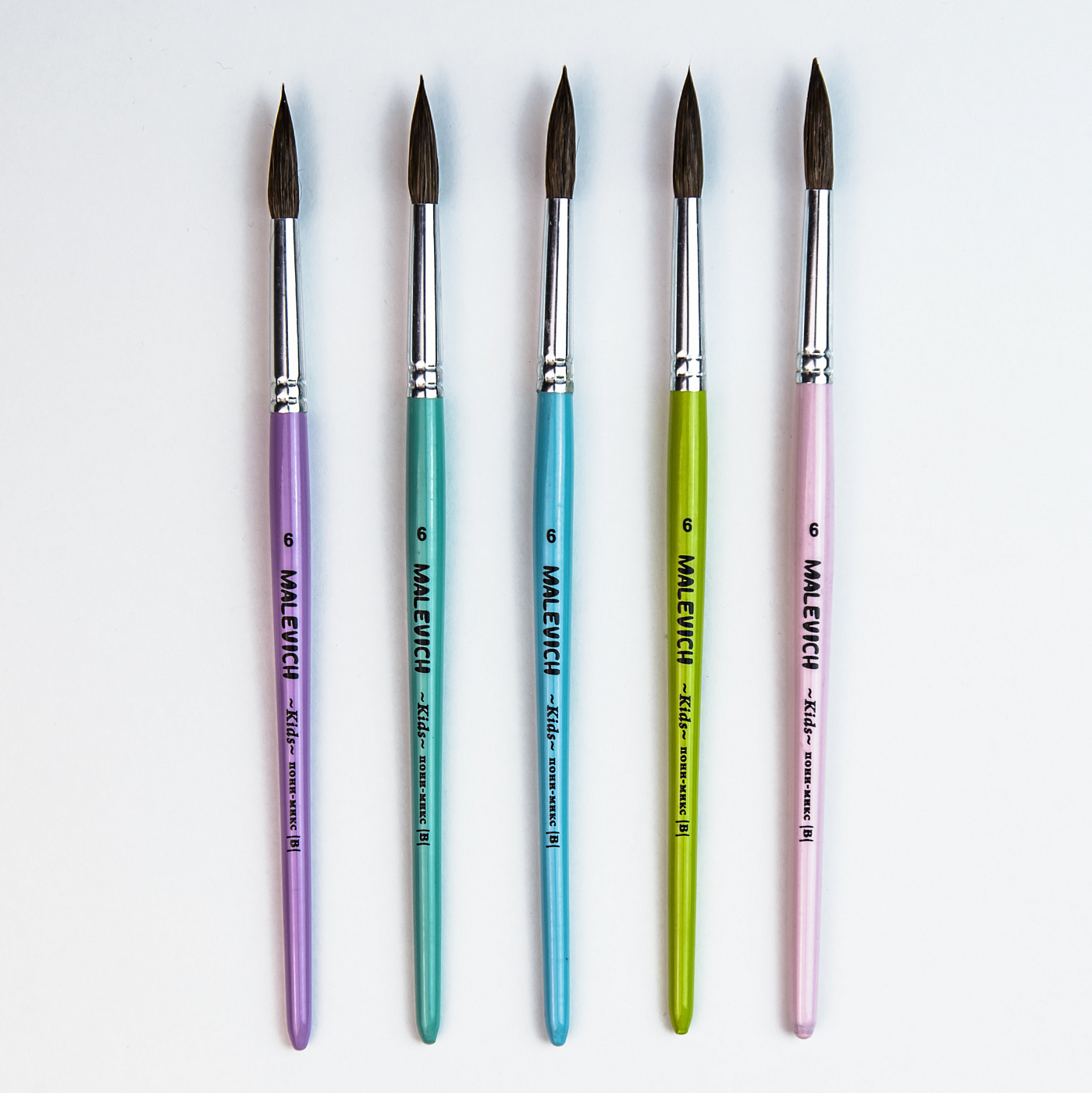 Сочетание отличного по характеристикам волоса пони и красочных разноцветных ручек делает эти кисти уникальными и любимыми юными художниками. Кисти отлично подойдут для работ акварельными и гуашевыми красками.