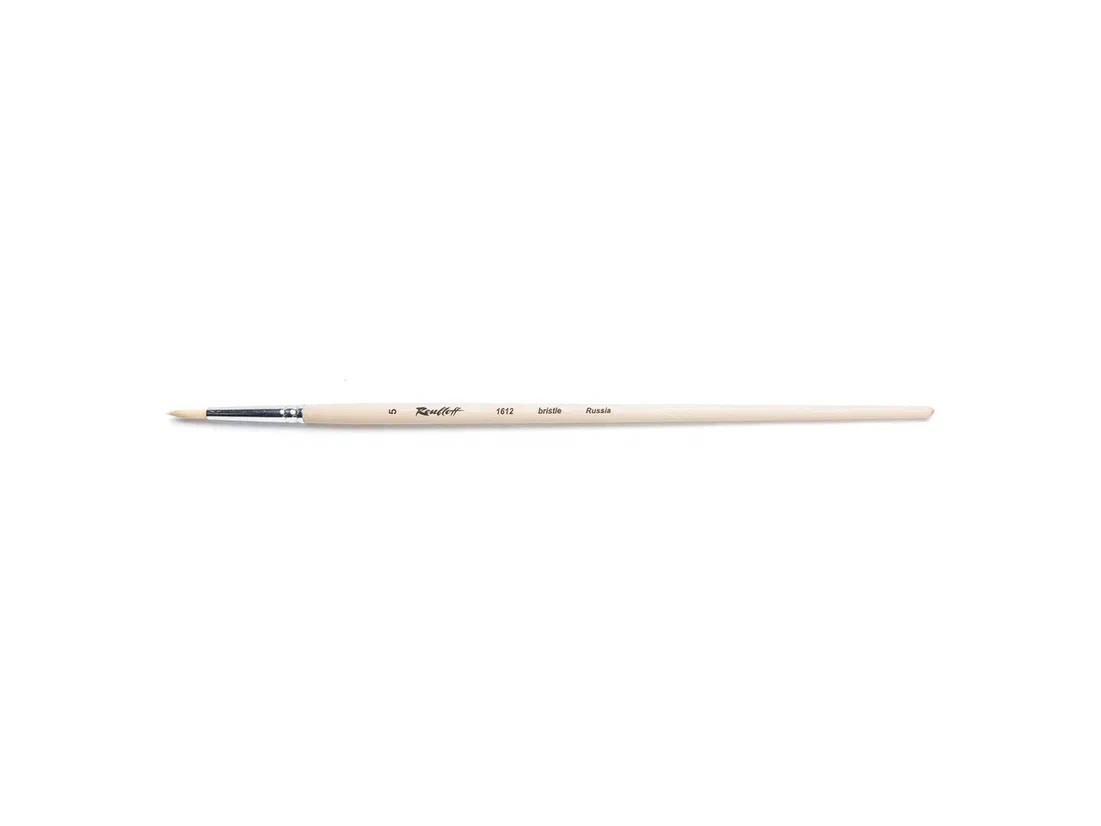 Roubloff Кисть щетина серия 1612 №5 круглая пропитанная лаком белая обойма длинная ручка