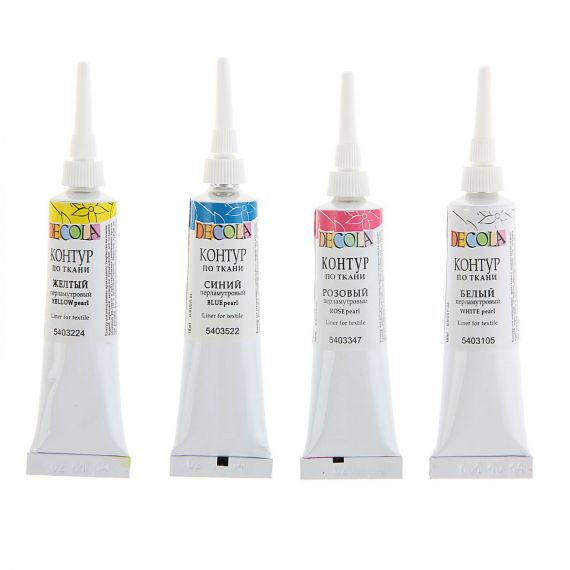 Контур по ткани Decola предназначен для создания объемных рисунков и предотвращения смешивания красок при росписи хлопчатобумажных и шелковых тканей.