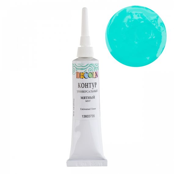 Контуры универсальные «Decola» изготавливаются на основе водной акриловой дисперсии. Широко используются для создания декоративных эффектов при работе с мелкими деталями и объемными рисунками. Применяются на различных поверхностях, таких как дерево, фарфор, стекло, металл, ткань, холст. Не позволяют краскам смешиваться друг с другом, что помогает создать чёткие границы.