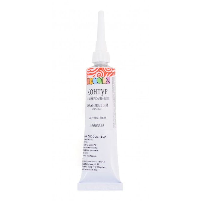 Контуры универсальные «Decola» для удобства пользования оснащены конусообразным сменным носиком и предлагаются в удобных тюбиках объемом по 18 миллилитров. В ассортименте представлено 25 различных цветов, в том числе металлики и перламутровые оттенки.