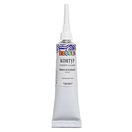 Контуры универсальные «Decola» изготавливаются на основе водной акриловой дисперсии. Широко используются для создания декоративных эффектов при работе с мелкими деталями и объемными рисунками. Применяются на различных поверхностях, таких как дерево, фарфор, стекло, металл, ткань, холст. Не позволяют краскам смешиваться друг с другом, что помогает создать чёткие границы.