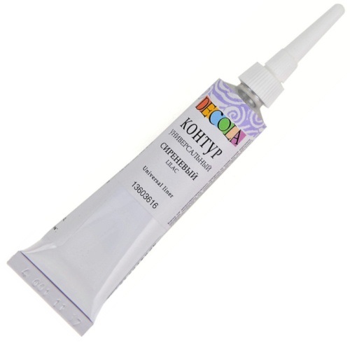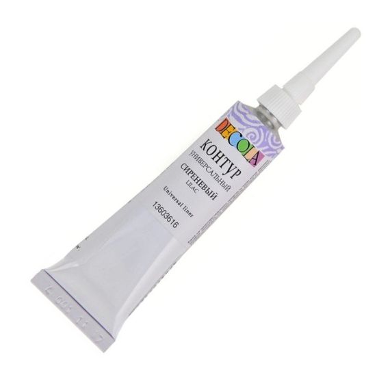 Контуры универсальные «Decola» изготавливаются на основе водной акриловой дисперсии. Широко используются для создания декоративных эффектов при работе с мелкими деталями и объемными рисунками. Применяются на различных поверхностях, таких как дерево, фарфор, стекло, металл, ткань, холст. Не позволяют краскам смешиваться друг с другом, что помогает создать чёткие границы.