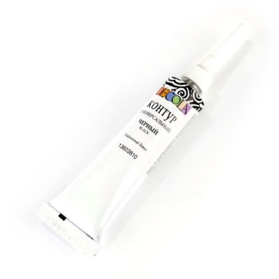 Контуры универсальные «Decola» изготавливаются на основе водной акриловой дисперсии. Широко используются для создания декоративных эффектов при работе с мелкими деталями и объемными рисунками. Применяются на различных поверхностях, таких как дерево, фарфор, стекло, металл, ткань, холст. Не позволяют краскам смешиваться друг с другом, что помогает создать чёткие границы.
