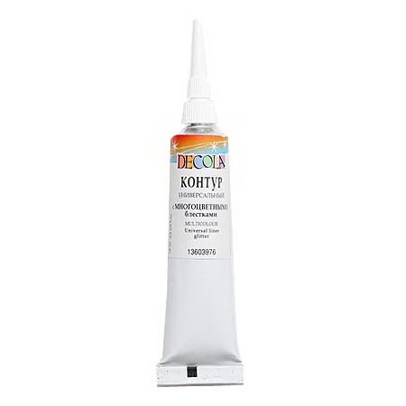 Контуры универсальные «Decola» изготавливаются на основе водной акриловой дисперсии. Широко используются для создания декоративных эффектов при работе с мелкими деталями и объемными рисунками. Применяются на различных поверхностях, таких как дерево, фарфор, стекло, металл, ткань, холст. Не позволяют краскам смешиваться друг с другом, что помогает создать чёткие границы.