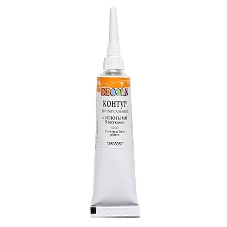 Контуры универсальные «Decola» изготавливаются на основе водной акриловой дисперсии. Широко используются для создания декоративных эффектов при работе с мелкими деталями и объемными рисунками. Применяются на различных поверхностях, таких как дерево, фарфор, стекло, металл, ткань, холст. Не позволяют краскам смешиваться друг с другом, что помогает создать чёткие границы.