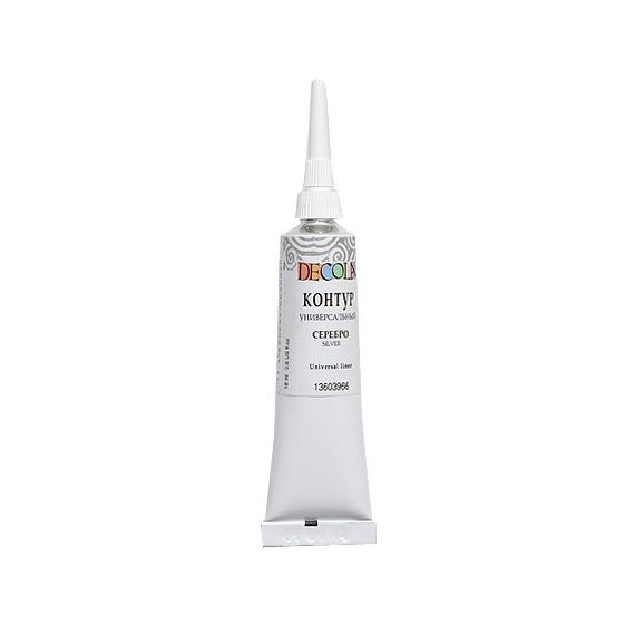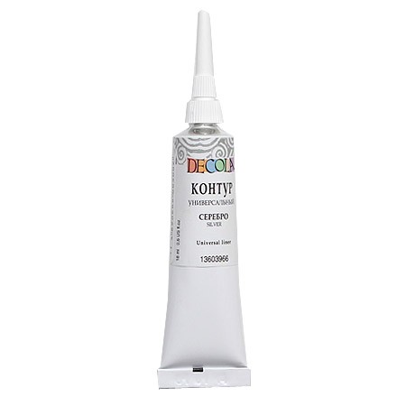 Контуры универсальные «Decola» изготавливаются на основе водной акриловой дисперсии. Широко используются для создания декоративных эффектов при работе с мелкими деталями и объемными рисунками. Применяются на различных поверхностях, таких как дерево, фарфор, стекло, металл, ткань, холст. Не позволяют краскам смешиваться друг с другом, что помогает создать чёткие границы.