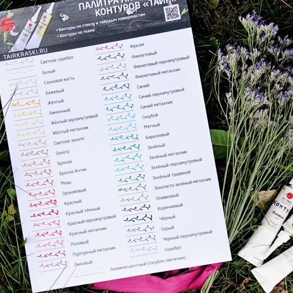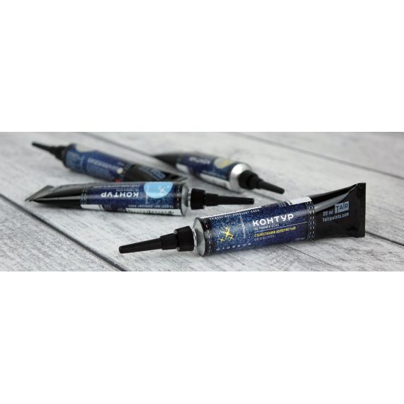 Контуры — это акриловые краски в тубе с острым наконечником, которые наносятся прямо из тюбика. Предназначены для создания контурных и точечных рисунков на ткани и коже. Также могут применяться и на других поверхностях, таких как дерево, бумага, пластик и т.д. Обладают высокой рельефностью и хорошо держат форму. Акриловые контуры ТАИР обладают густой консистенцией и отлично зарекомендовали себя в технике популярной точечной росписи и имитации вышивки. Кроме того, они используются для подрисовок тонких линий, узоров и рисования надписей в миксмедийных и скрапбукинговых техниках. В декупаже контуры часто применяются для того, чтобы скрыть границу приклеенного рисунка или для подрисовки отдельных элементов.