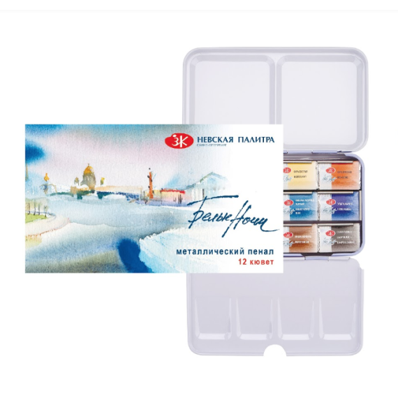 Белые Ночи Набор акварельных красок 12цв 2.5мл кюветы металл