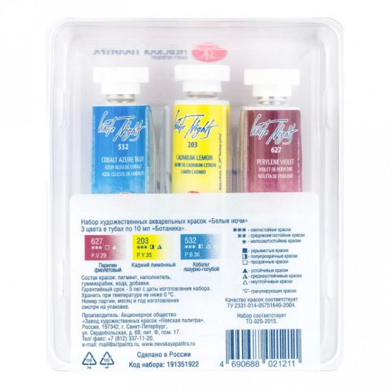 Белые Ночи Набор акварельных красок 3цв 10мл Ботаника тубы пластик