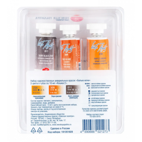 Белые Ночи Набор акварельных красок 3цв 10мл Кошки тубы пластик
