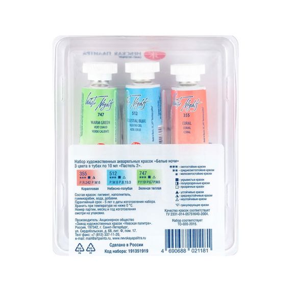 Белые Ночи Набор акварельных красок 3цв 10мл Пастель тубы пластик