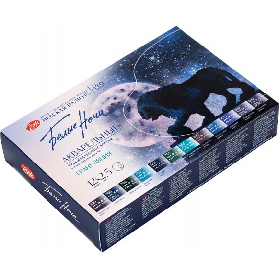 Акварель «Белые ночи» изготовлена из высококачественных тонко тертых пигментов и связующего с добавлением гуммиарабика. Цвета хорошо смешиваются между собой и легко размываются водой. Краска обладает высокой светостойкостью.