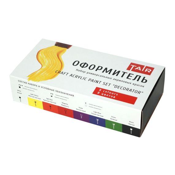 Набор акриловых красок «Оформитель» применяется для декоративно-прикладного искусства, художественных, дизайнерских и оформительских работ.