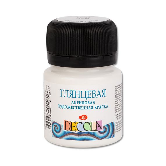 Краски «DECOLA» хорошо подходят для работы на таких поверхностях как холст, бумага, картон, стекло, дерево, металл, полотно, кожа. Обладают высокой укрывистостью, хорошо смешиваются, быстро высыхают. После высыхания краски приобретают глянцевый блеск. Палитра состоит из 39 цветов.