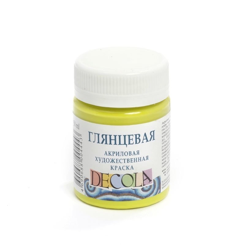 Глянцевые художественные акриловые краски серии «DECOLA» – воднодисперсные быстро сохнущие краски, содержащие суспензию пигмента в акриловой полимерной эмульсии.