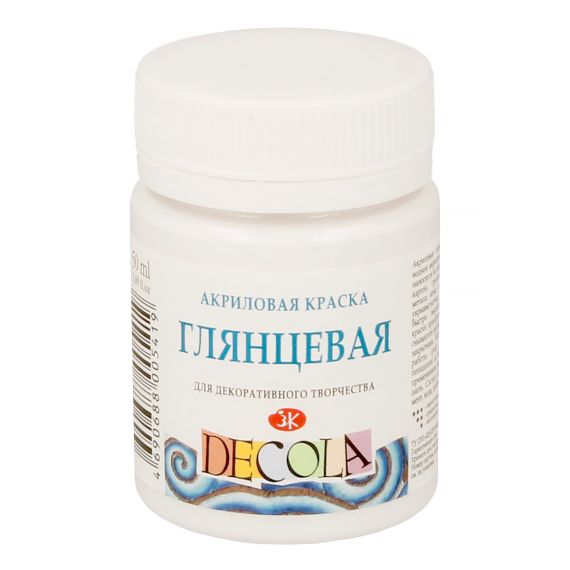 Краски «DECOLA» хорошо подходят для работы на таких поверхностях как холст, бумага, картон, стекло, дерево, металл, полотно, кожа. Обладают высокой укрывистостью, хорошо смешиваются, быстро высыхают. После высыхания краски приобретают глянцевый блеск. Палитра состоит из 39 цветов.
