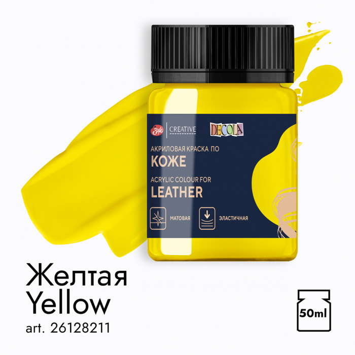 Акриловые краски по коже Decola изготавливаются на основе водной акриловой дисперсии, хорошо смешиваются друг с другом, обеспечивают равномерное покрытие цветом. Не растрескиваются после нанесения, прочно удерживаются даже на гибких и гладких поверхностях. Устойчивы к воздействию воды и высоких температур. Кожу рекомендуется предварительно очистить от загрязнений и обезжирить. Перед применением краску тщательно перемешать. Нанести краску кистью тонким и ровным слоем. Рекомендуется нанесение 1-3 слоев. Просушить каждый слой в течение 2 часов.