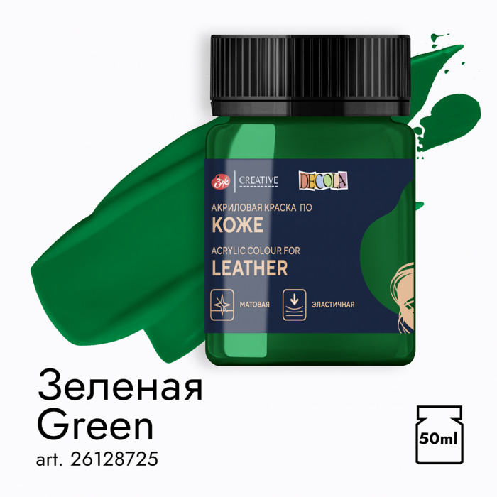 Акриловые краски по коже Decola изготавливаются на основе водной акриловой дисперсии, хорошо смешиваются друг с другом, обеспечивают равномерное покрытие цветом. Не растрескиваются после нанесения, прочно удерживаются даже на гибких и гладких поверхностях. Устойчивы к воздействию воды и высоких температур. Кожу рекомендуется предварительно очистить от загрязнений и обезжирить. Перед применением краску тщательно перемешать. Нанести краску кистью тонким и ровным слоем. Рекомендуется нанесение 1-3 слоев. Просушить каждый слой в течение 2 часов.