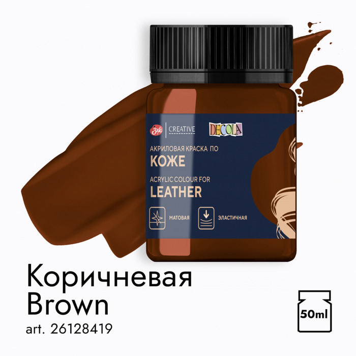 Акриловые краски по коже Decola изготавливаются на основе водной акриловой дисперсии, хорошо смешиваются друг с другом, обеспечивают равномерное покрытие цветом. Не растрескиваются после нанесения, прочно удерживаются даже на гибких и гладких поверхностях. Устойчивы к воздействию воды и высоких температур. Кожу рекомендуется предварительно очистить от загрязнений и обезжирить. Перед применением краску тщательно перемешать. Нанести краску кистью тонким и ровным слоем. Рекомендуется нанесение 1-3 слоев. Просушить каждый слой в течение 2 часов.