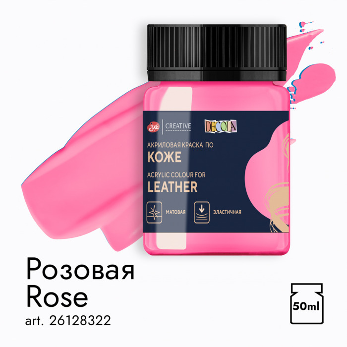 Акриловые краски по коже Decola изготавливаются на основе водной акриловой дисперсии, хорошо смешиваются друг с другом, обеспечивают равномерное покрытие цветом. Не растрескиваются после нанесения, прочно удерживаются даже на гибких и гладких поверхностях. Устойчивы к воздействию воды и высоких температур. Кожу рекомендуется предварительно очистить от загрязнений и обезжирить. Перед применением краску тщательно перемешать. Нанести краску кистью тонким и ровным слоем. Рекомендуется нанесение 1-3 слоев. Просушить каждый слой в течение 2 часов.