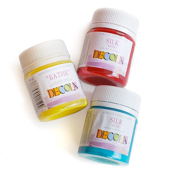 Акриловые краски по шелку «батик» серии DECOLA предназначены для различных типов натуральных и синтетических тонких тканей. Наносятся кистью непосредственно на ткань. Обладают хорошей растекаемостью. Краски глубоко проникают в волокна ткани, почти не уплотняя ее. Закрепляются горячим утюгом с изнаночной стороны. Быстро сохнут. Палитра состоит из 23 цветов.