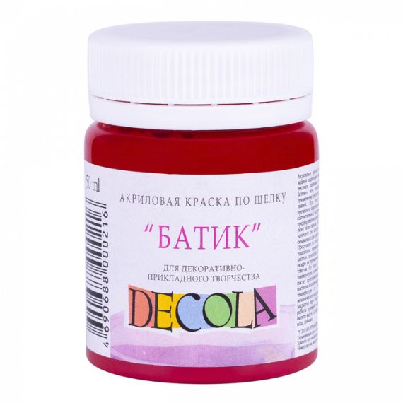 Акриловые краски по шелку «батик» серии DECOLA предназначены для различных типов натуральных и синтетических тонких тканей. Наносятся кистью непосредственно на ткань. Обладают хорошей растекаемостью. Краски глубоко проникают в волокна ткани, почти не уплотняя ее. Закрепляются горячим утюгом с изнаночной стороны. Быстро сохнут. Палитра состоит из 23 цветов.