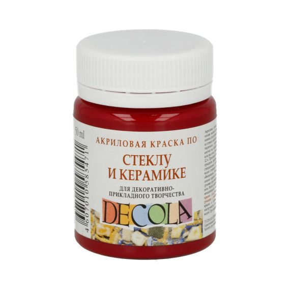 Акрил Decola является влагостойким, имеет хорошую светостойкость и обладает чистыми насыщенными цветами. Достоинство этой краски в том, что она не требует фиксации обжигом. Специально для этой серии разработан разбавитель акриловых красок по стеклу и керамике, который не только увеличивает прозрачность красок, но и сохраняет вязкость и устойчивость готовых изделий к воде. Краски очень популярны среди художников разных направлений.