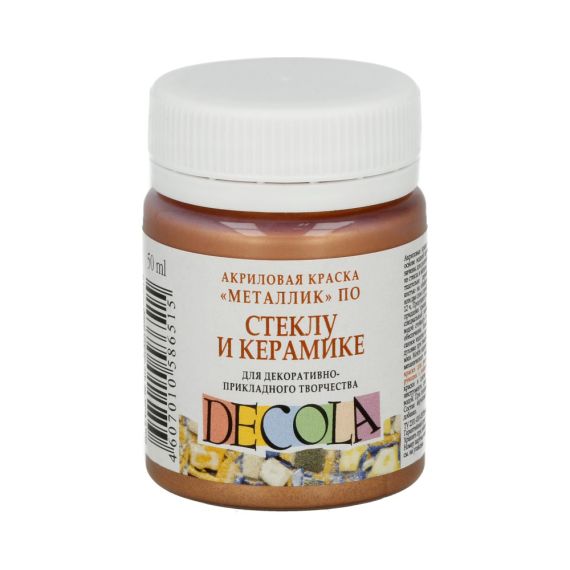 Акрил Decola является влагостойким, имеет хорошую светостойкость и обладает чистыми насыщенными цветами. Достоинство этой краски в том, что она не требует фиксации обжигом. Специально для этой серии разработан разбавитель акриловых красок по стеклу и керамике, который не только увеличивает прозрачность красок, но и сохраняет вязкость и устойчивость готовых изделий к воде. Краски очень популярны среди художников разных направлений.