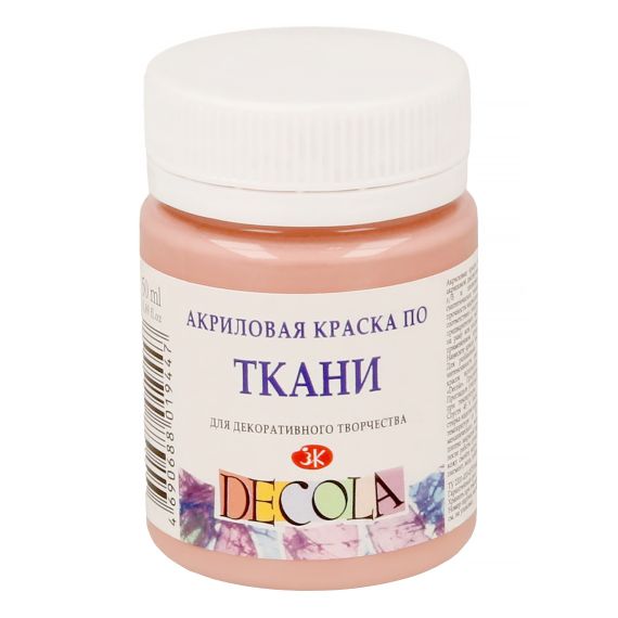 Акрил по ткани Decola предназначен для росписи хлопчатобумажных, шелковых и синтетических тканей. Краска наносится непосредственно на ткань кистью, штемпелем или через трафарет. Готовый рисунок закрепляется горячим утюгом с внутренней стороны. Краска светостойкая, быстро сохнет и не линяет. Для разбавления акрила и получения акварельного эффекта необходимо использовать разбавитель для акриловых красок по ткани Decola.