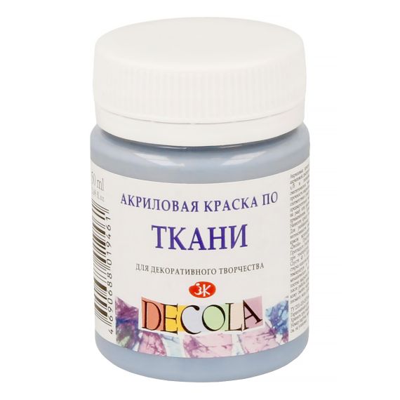 Акрил по ткани Decola предназначен для росписи хлопчатобумажных, шелковых и синтетических тканей. Краска наносится непосредственно на ткань кистью, штемпелем или через трафарет. Готовый рисунок закрепляется горячим утюгом с внутренней стороны. Краска светостойкая, быстро сохнет и не линяет. Для разбавления акрила и получения акварельного эффекта необходимо использовать разбавитель для акриловых красок по ткани Decola.