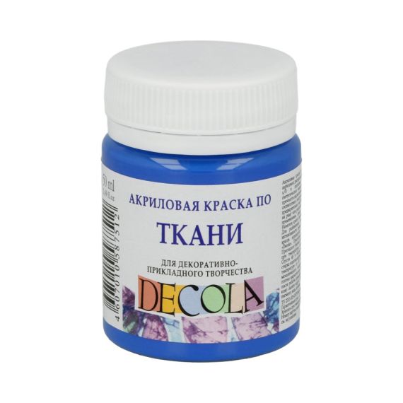 Акрил по ткани Decola представлен широкой палитрой, в которой, помимо основных цветов, есть флуоресцентные, перламутровые и цвета металлики. Все цвета выпускаются в банках по 50 миллилитров и в различных наборах.
