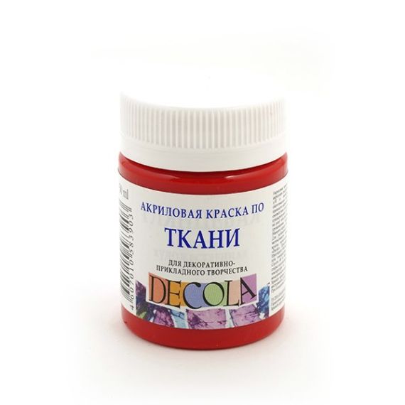Акрил по ткани Decola представлен широкой палитрой, в которой, помимо основных цветов, есть флуоресцентные, перламутровые и цвета металлики. Все цвета выпускаются в банках по 50 миллилитров и в различных наборах.