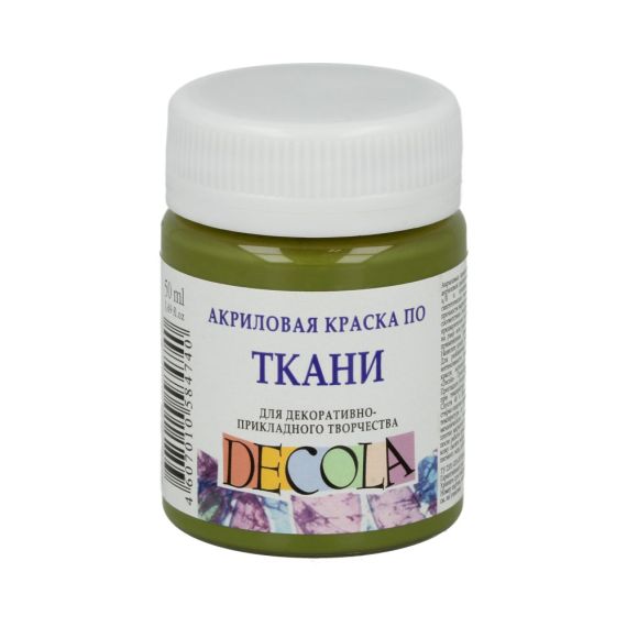Акрил по ткани Decola представлен широкой палитрой, в которой, помимо основных цветов, есть флуоресцентные, перламутровые и цвета металлики. Все цвета выпускаются в банках по 50 миллилитров и в различных наборах.