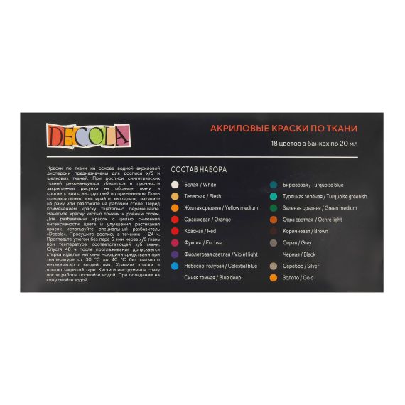 Decola Набор акриловых красок по ткани 18цв 20мл